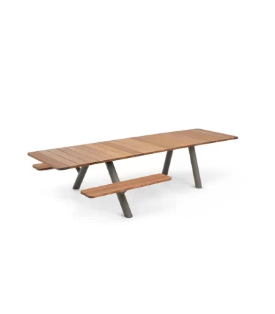 With just four components — central top, two end tops, and legs — Panigiri transforms into a table of any length. Start with seating for eight and simply add modules for more. Hosting a crowd? No problem. This clever design scales up with ease and style.