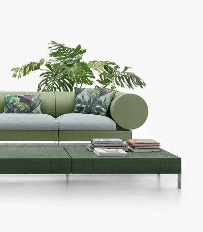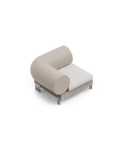 A modular sofa with a pop style that combines bold, high-impact design with unparalleled versatility, making it perfect for stylishly furnishing both indoor and outdoor spaces. Its modular structure allows it to be configured according to specific space needs without having to compromise on style. Every component has been meticulously designed to withstand the elements, from the water-repellent and stain-resistant materials of the upholstery to the frame treated to resist corrosion. The Rhor sofa gives you endless possibilities for creating the perfect combination of style, functionality, adapting to any setting