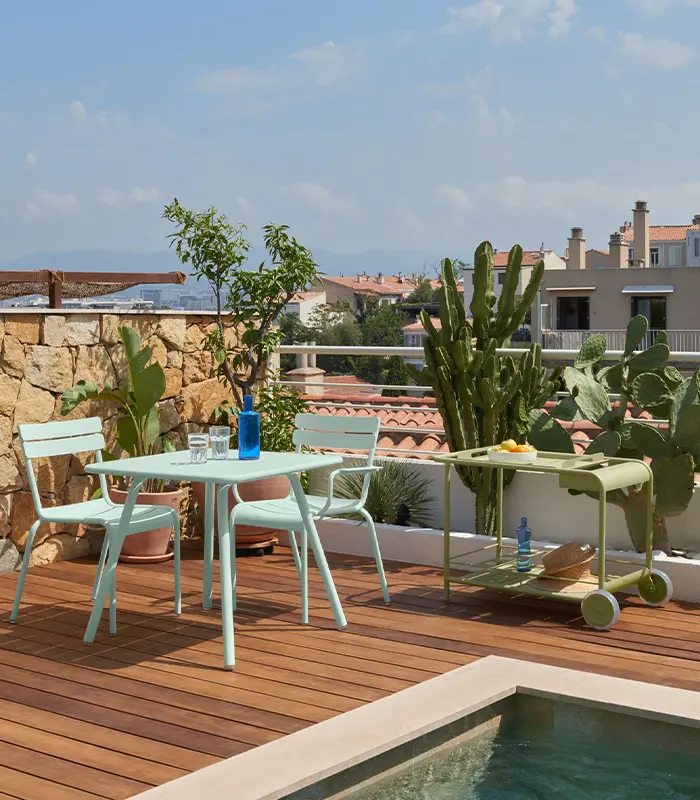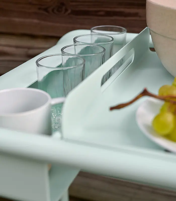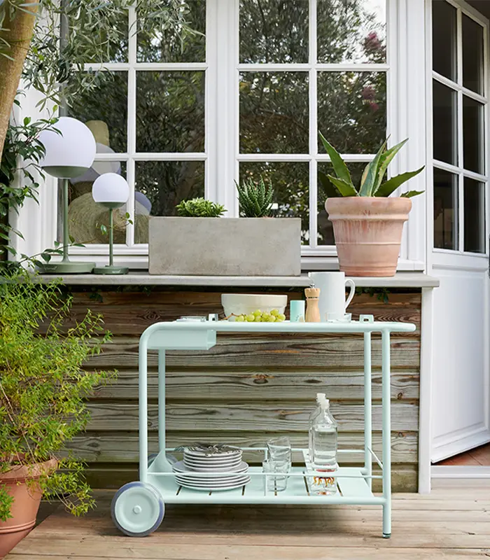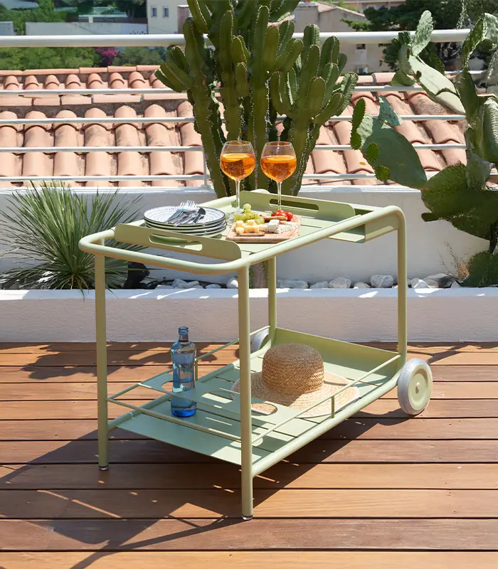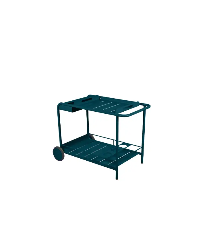 This versatile trolley bar features a removable tray and two wheels, making it easy to move and perfect for serving guests. With a sleek design, it offers practical storage for bottles and other essentials. Made entirely from durable aluminum, this side bar is built to withstand outdoor conditions while maintaining visual appeal. Its clever design and variety of color options make it an excellent addition to any space, especially when paired with a Luxembourg table-and-chair set.