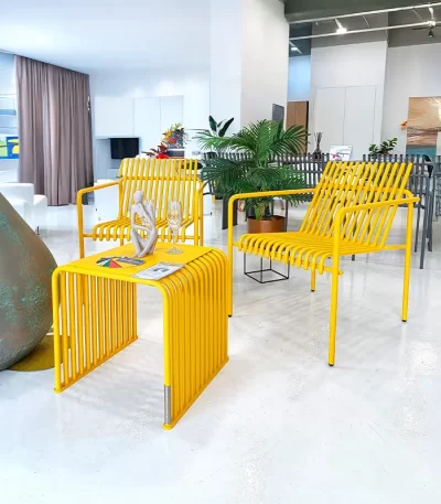 Complementing the armchair is the 015 Cube, the most versatile piece in the collection. Serving as a seat, coffee table, or pouf, it adapts seamlessly to both urban and outdoor environments. Made from lightweight, heat-dissipating tubes, the 015 Cube is designed for year-round use—ensuring comfort in both summer and winter.